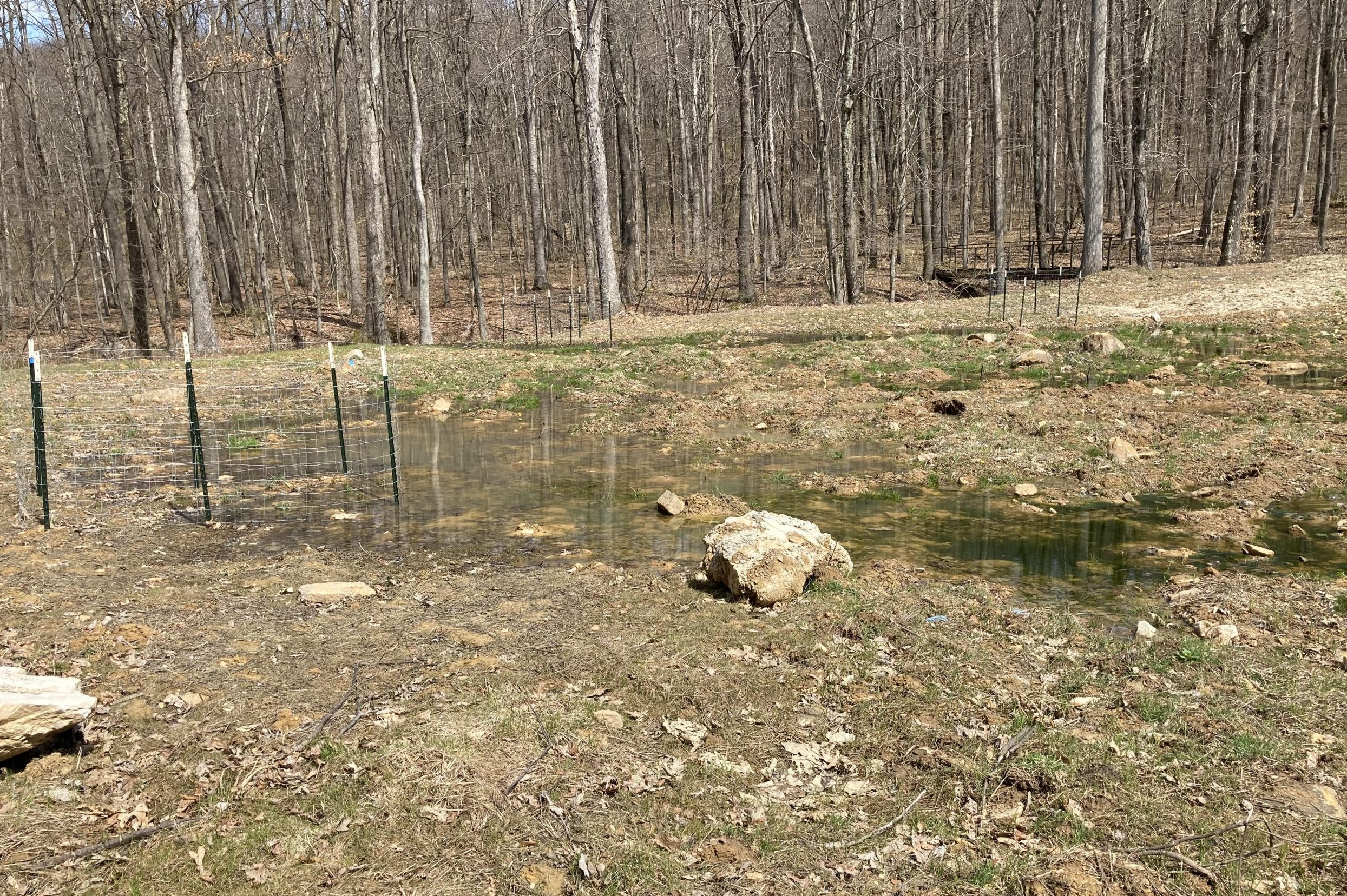 Top Photo: A spring-fed pond sits at one end of the restored wetland habitat. It may not dry up in the summer like the network of vernal pools in the wet meadow below. Photo: Kara Holsopple / The Allegheny Front