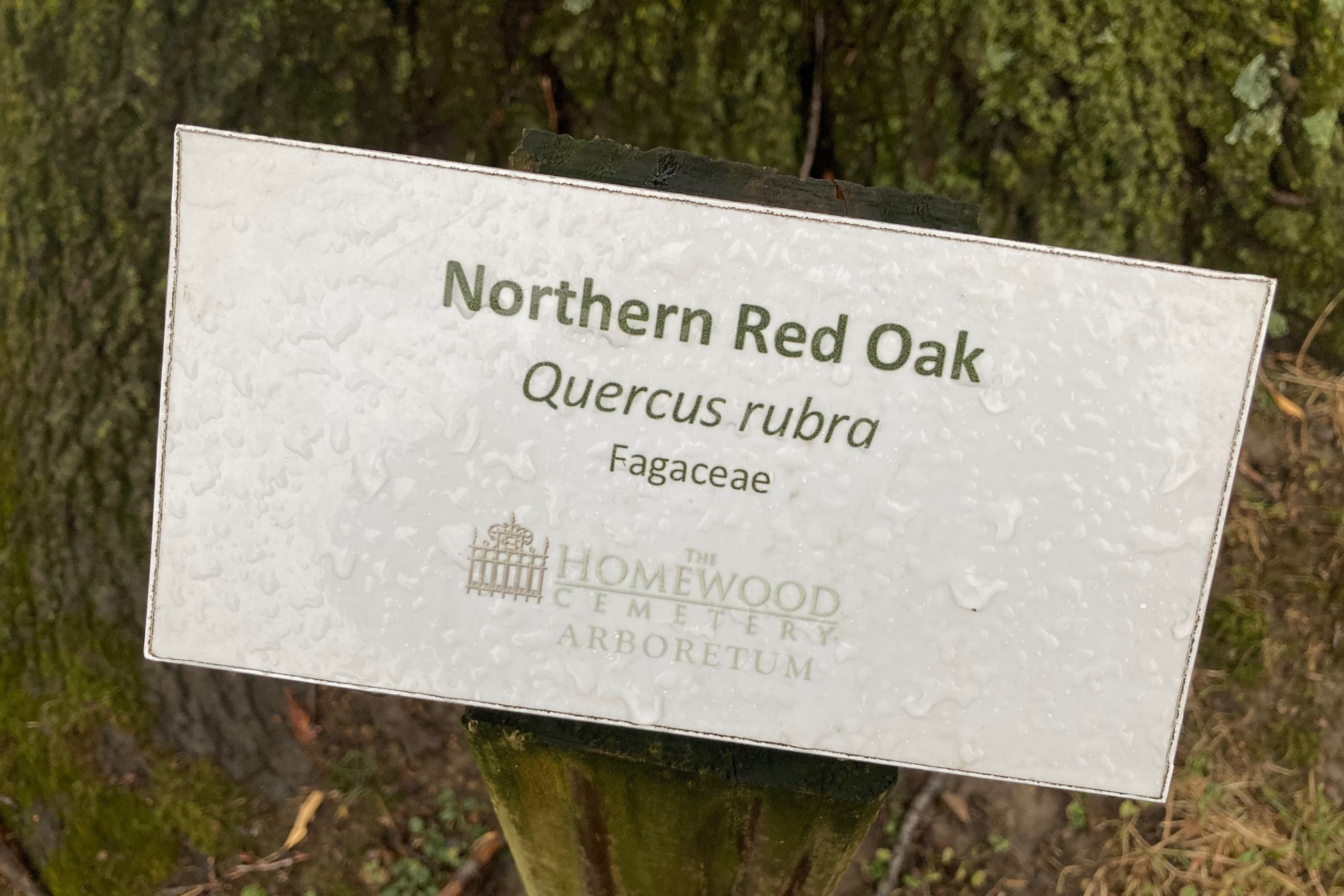 A huge northern red oak (Quercus rubra) found in the Homewood Cemetery is pushing up grave markers from the late 1800s. Stavish said it might have been planted there before the graves were put there, or might have been a young tree then. Either way, Stavish said it’s likely one of the oldest red oaks in the city.