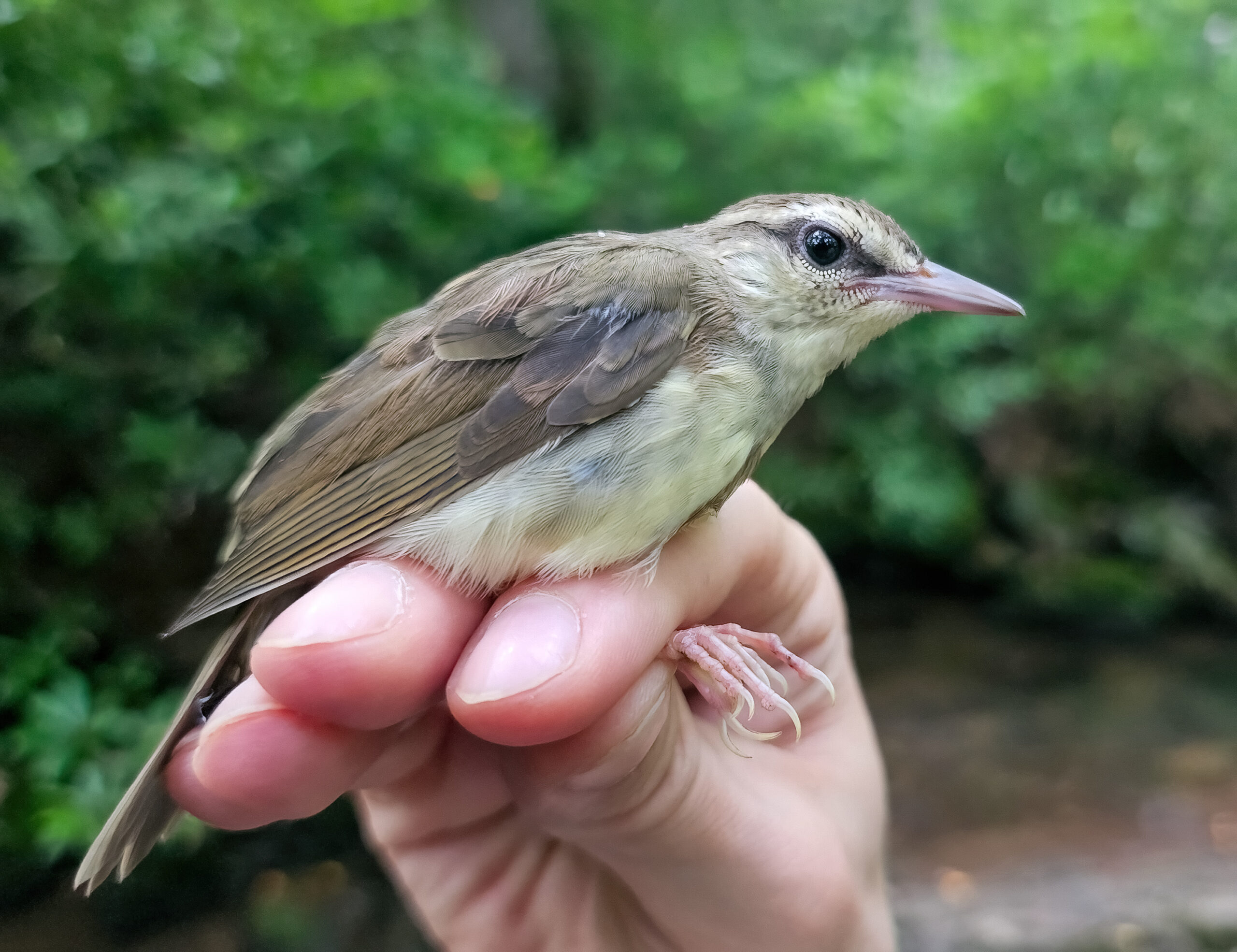 So on July 12, Liadis and Yeany went to Bear Run to try to band that second male and to survey the habitat where warblers would likely breed. They did band another male that day, but perhaps more exciting, they spotted the male they had banded in May with a female and a juvenile — a family group.